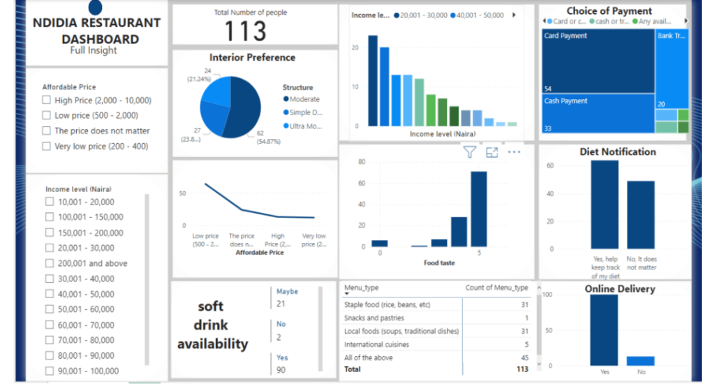 Our project’s ultimate aim is to empower individuals interested in venturing into the Nigerian food industry with the knowledge and insights needed to build and sustain a successful restaurant. Whether you’re a budding entrepreneur, an industry professional, or simply curious about the Nigerian culinary landscape, our findings and interactive Power BI dashboard are sure to provide you with valuable insights and inspiration